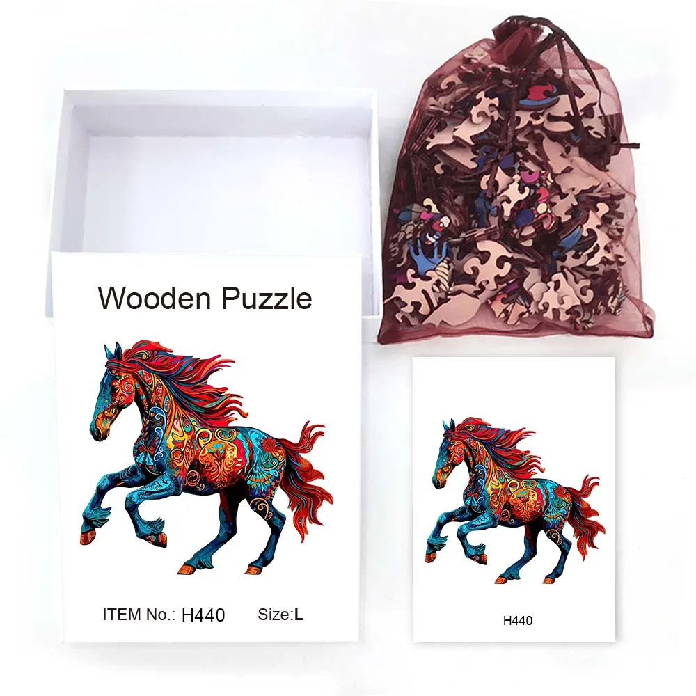 Oživte svoj domov alebo kanceláriu s našimi drevenými puzzlami Kôň. Tieto úžasne spracované puzzle sú vyrobené z kvalitného dreva a zachytávajú jedinečnú eleganciu koňa v atraktívnom trojrozmernom dizajne. Sú ideálne na vystavenie, hranie alebo ako zábavná aktivita pre celú rodinu.